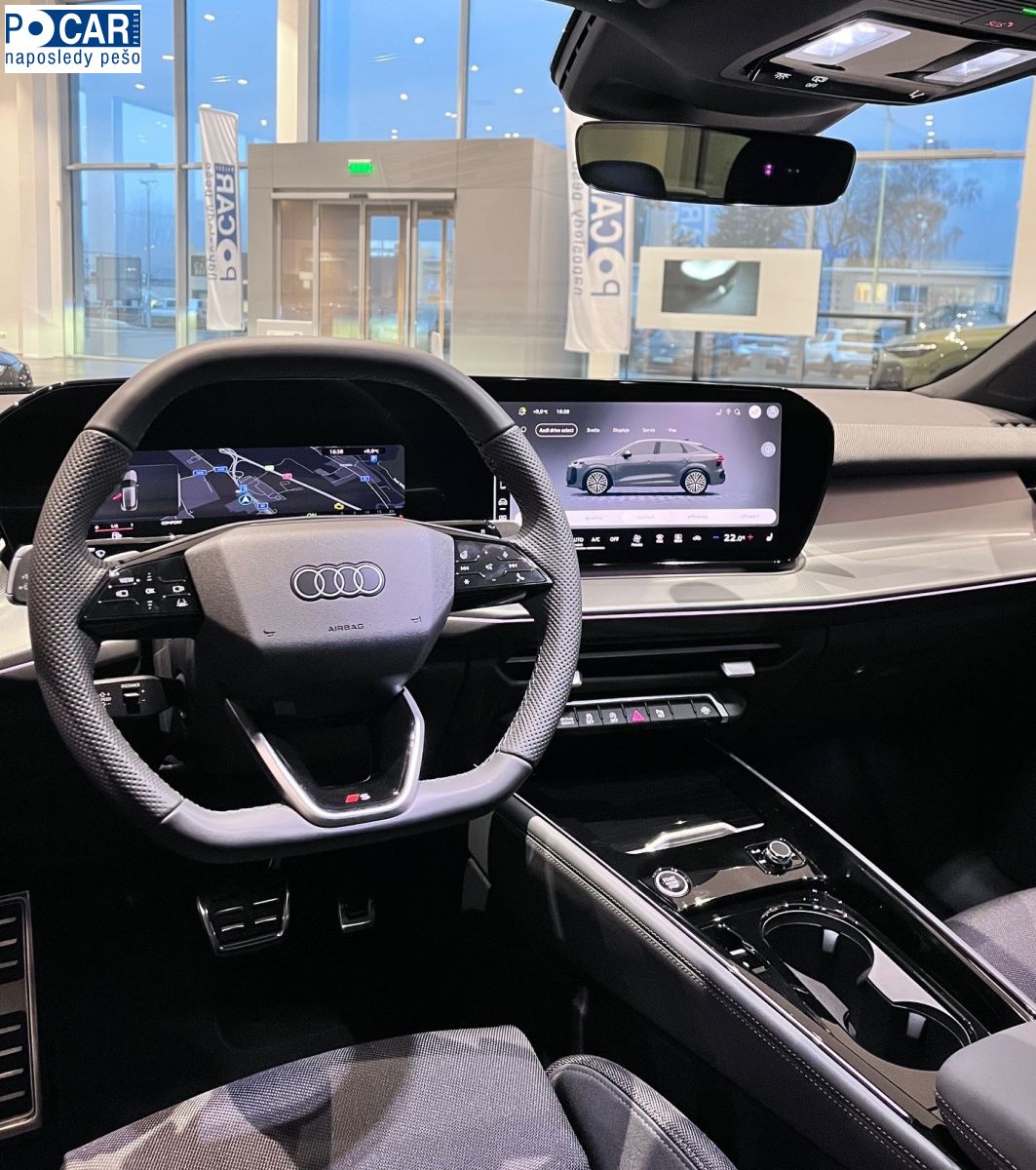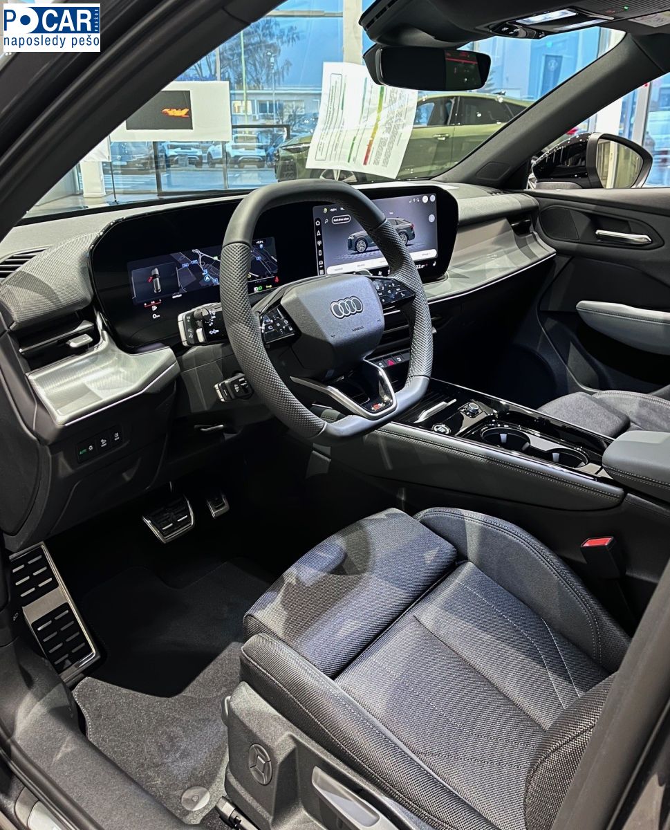 Interiér S line so športovými sedadlami v kombinácii látky a mikrovlákna, čierna farba Balík obsahuje nasledujúce položky: - športové sedadlá vpredu - stredový panel sedadla a opierky hlavy v látke Impressum, čierna farba, bočná časť sedadla a horná časť operadla sedadla v mikrovlákne, čierna farba; kontrastné prešívanie (čalúnenie sedadiel vzadu vizuálne zladené s prednými sedadlami) - emblém S na operadlách predných sedadiel - interiérové ??prvky v látke a umelej koži: ozdobné prvky na prístrojovej doske a dverách v látke Impressum, ako aj ozdobné prvky v lakťových opierkach dverí, stredovej lakťovej opierke a bokoch stredovej konzoly v umelej koži, oceľovosivá farba; s kontrastným prešívaním - ovládače na volante v lesklom čiernom vyhotovení - interiérové ??lišty s hliníkovým vzhľadom: prvky na tlačidlách ovládania okien a na tlačidle elektronickej parkovacej brzdy - prahové lišty s hliníkovými vsadeniami, vpredu, osvetlené, emblém S - volant s chrómovým vzhľadom, emblém S, rukoväte volantu z perforovanej kože a kontrastné prešívanie - strop čalúnený v čiernej látke - balík ambientného osvetlenia plus: viacfarebné osvetlenie kontúr a plôch v interiéri - ochrana nakladacej hrany z nehrdzavejúcej ocele - pedále a opierka na nohy z nehrdzavejúcej ocele